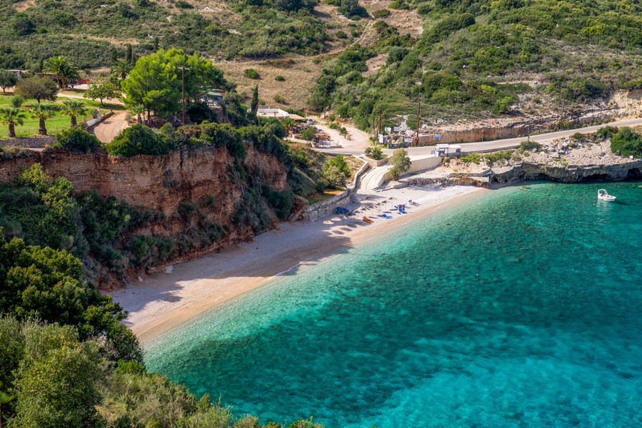 Намира се на север от град Закинтос. Плажната ивица е покрита със смес от пясък и камъчета. Кристалните, тюркоазени води са любими всички гмуркачи.