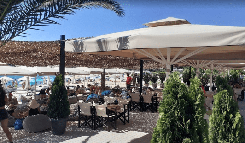 На основния плаж има плажен бар и в претъпкан с шезлонги и чадъри. Ако отидете след 11 часа е много вероятно да не можете да си намерите свободно място. Ако не сте си намерили място, не се отчайвайте, има други плажове по-нагоре по брега, където може да намерите място за почивка.