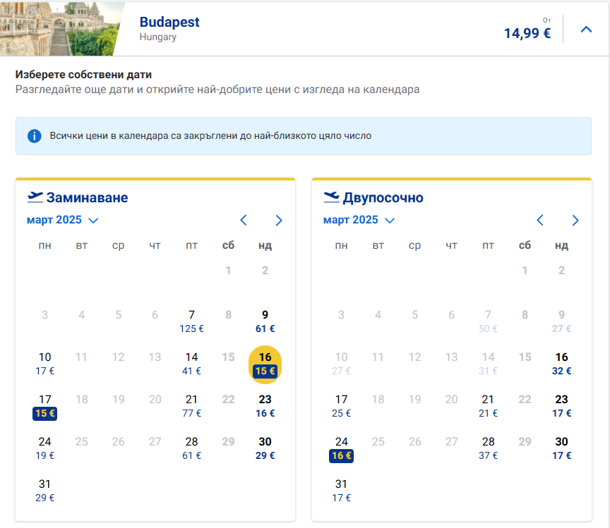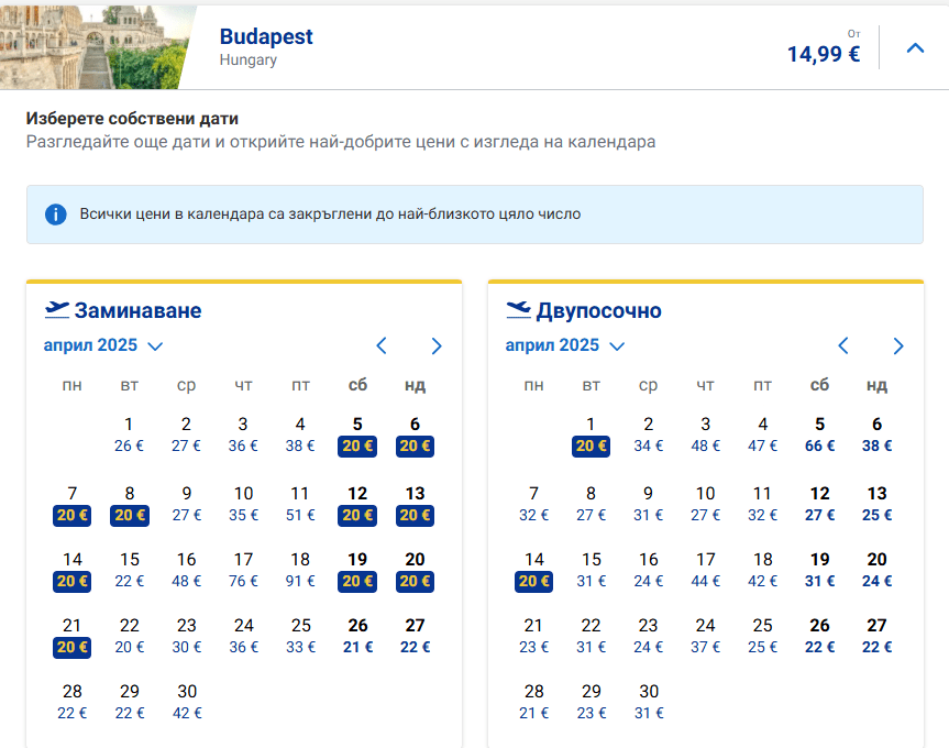 А за тези, които искат да прекарат Великден в Будапеща, има специална промоция за 19-21 април – двупосочен билет с малък ръчен багаж само за 43,31 евро.