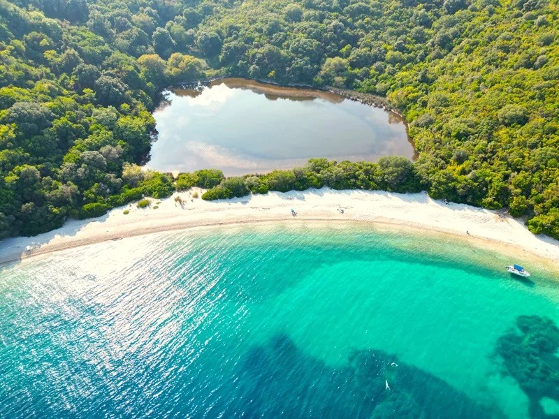 🔹 Плажовете Ровиния и Лимни – достъпни само по вода или по труден пешеходен маршрут