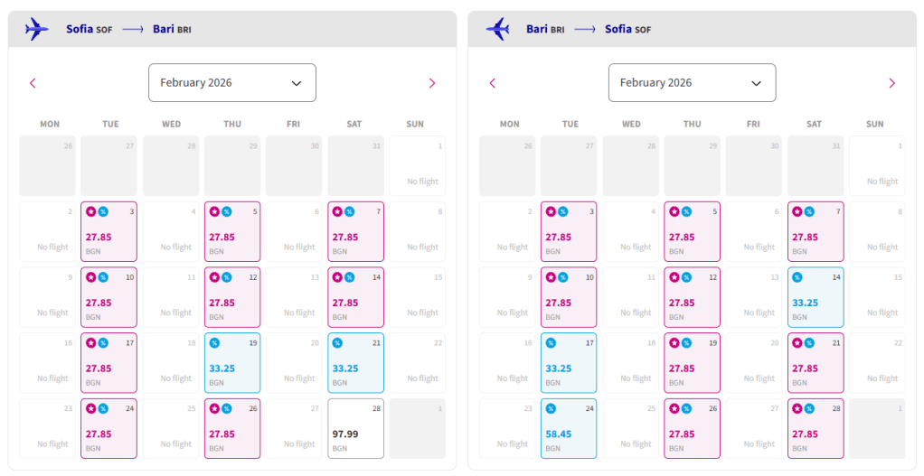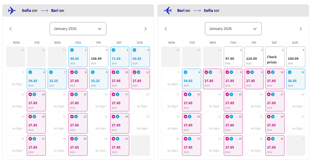 🛫 Wizz Air предлага директни полети от София до Бари за около 27,85 лв в посока през януари и февруари.